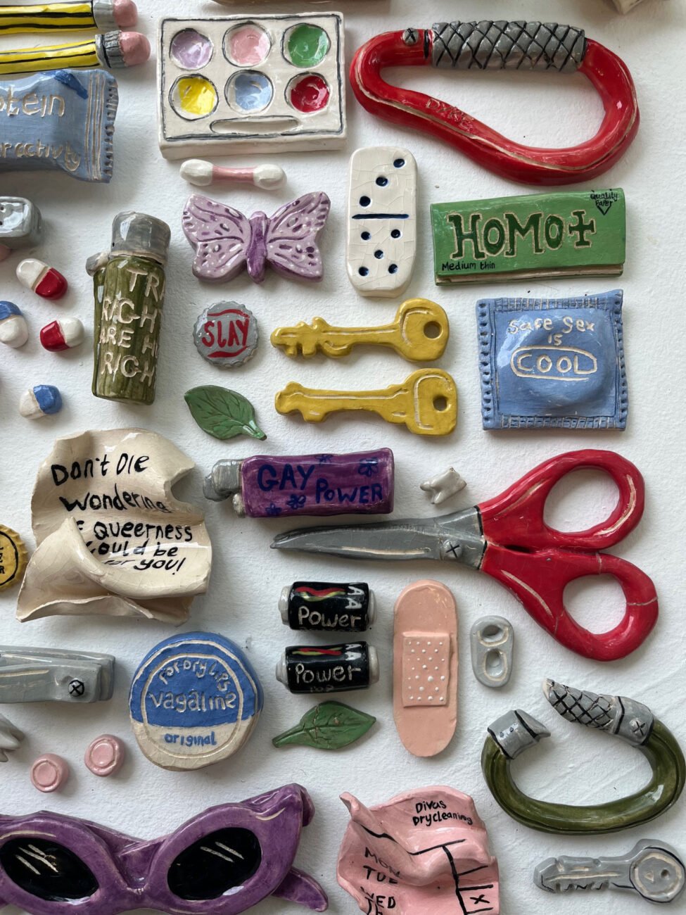 Their work is highly detailed and often tells stories through subtle visuals. They’re passionate about exploring Queer culture, community, and history in their art. Within ceramics, they’re especially drawn to sculpting and
